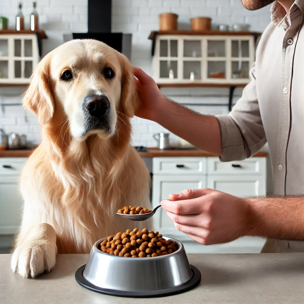 기존 사료를 중단하고, 단순한 단백질과 탄수화물로 이루어진 새로운 음식(예: 오리고기, 감자 등)으로 변경합니다.